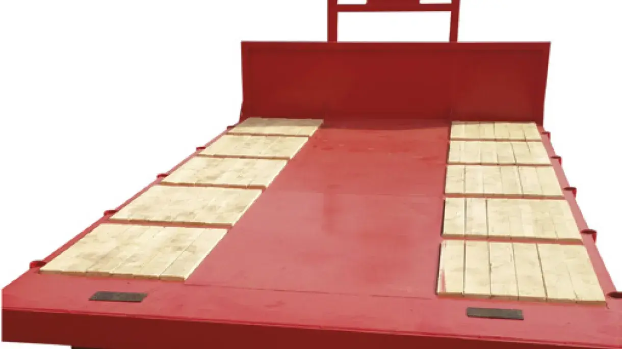 Bigab Plattform mit Schutzstollen. Ausgestattet mit Rollen. Exzellente Verzurr Möglichkeiten.