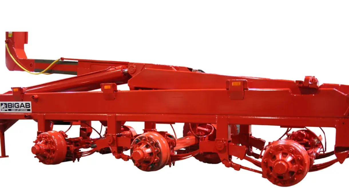 Our largest BIGAB is equipped with a tridem parabolic spring suspension on all three axles. The suspension package is one for each axle. The first and the last axel are steering and the one in the middle is straight.