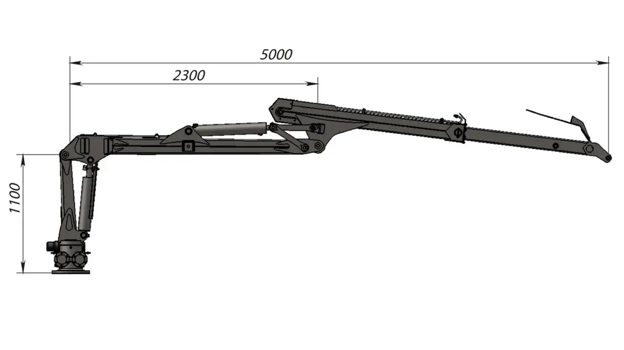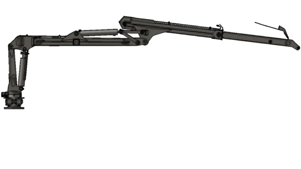 The main constructions are made out of high strength steel to give the best strength to weight ratio, which allows higher payload. The crane is compact when in folded position, essential when working on other applications such as wood chippers in confined spaces/urban environments, compact mini forwarders, compact tractor and wood processing lines.
