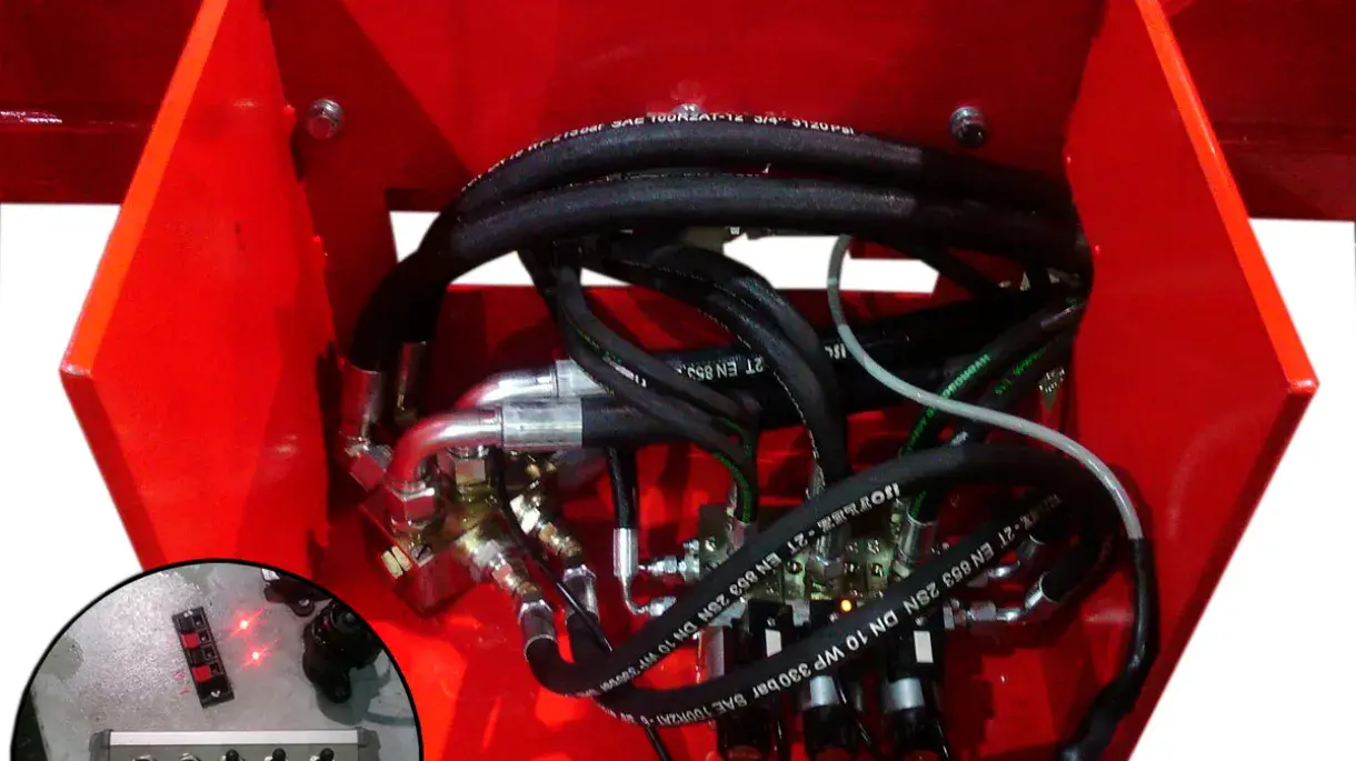 The trailer can be equipped with EFC, tractor-regulated function control with control box in the cab. The EFC is available in different sizes depending on the equipment of the trailer. Standard is three functions.