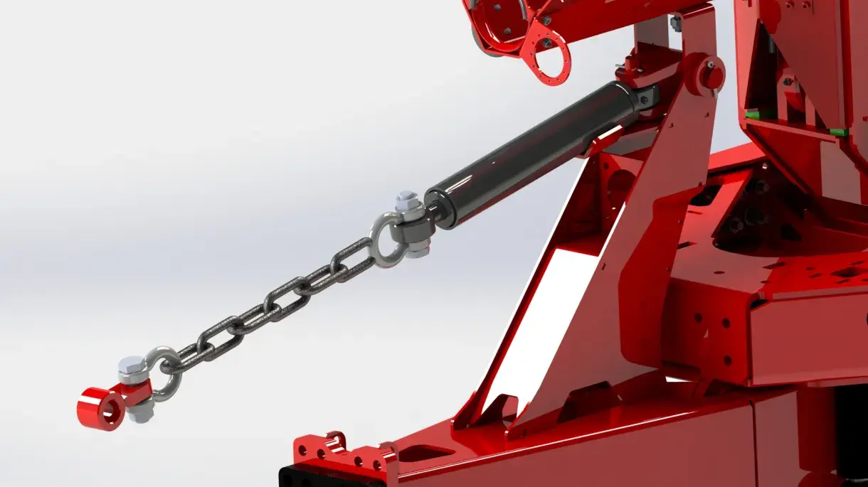 To limit the strain on the tractor and the towing eyelet one are able with the hydraulic frame lock to transfer the weight to the tractor at the pulling moment when the load eases of the ground. This feature can be seen as a weight transfer cylinder that works in conjunction with the bogie blocking (interaction does not occur with sprung bogie) and provides a more stable loading and increased safety margin. With the frame lock the whole of the tractor is used as a balance when hooking.