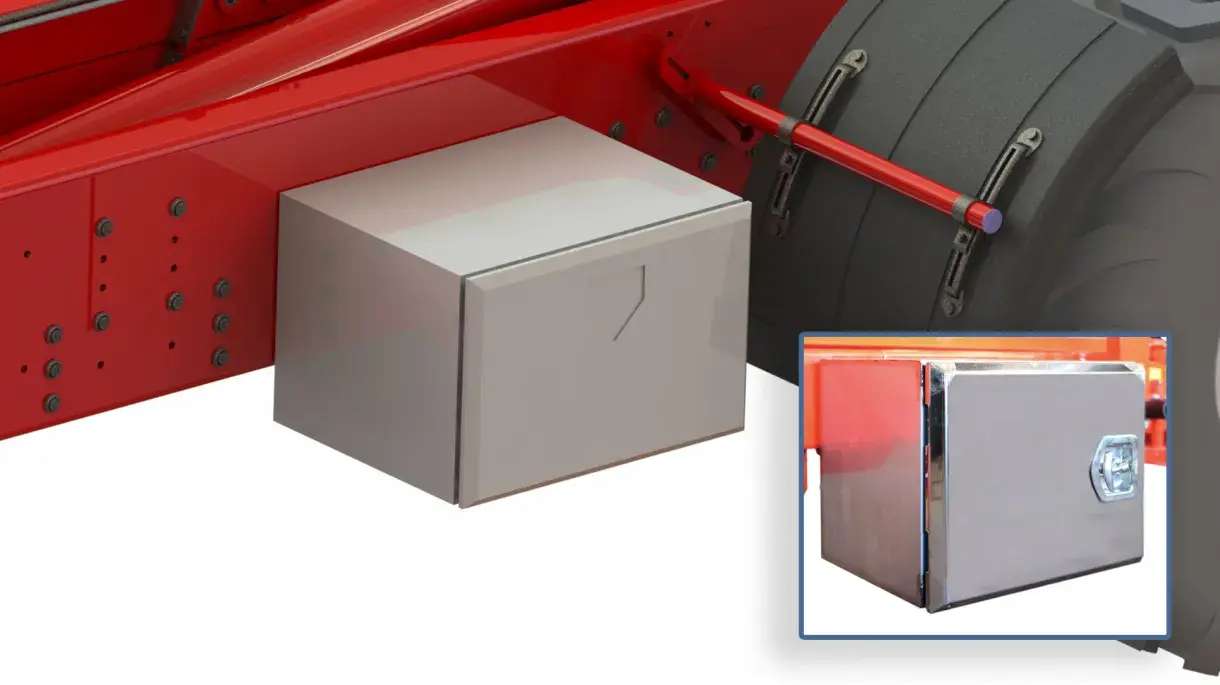 The model can be equipped with a stainless-steel toolbox. Lockable with key. Size 600x400x500.