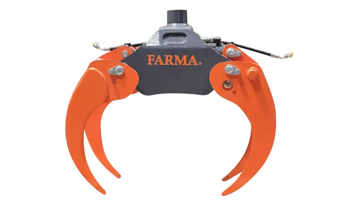 FARMA a développé quatre grappins pinces pour faciliter les opérations avec les branches car les branches et les cimes ne s'accrochent pas aussi facilement au grappin. FARMA a développé quatre modèles de grappins pinces, les 0,12/ 0,16/ 0,20 et 0,24. Le grappin présent sur la grue est remplacé par le grappin pince. Pour plus d'informations sur le modèle de grappin pince correspondant à chaque grue de chargement et aux différentes opérations, veuillez contacter votre revendeur.