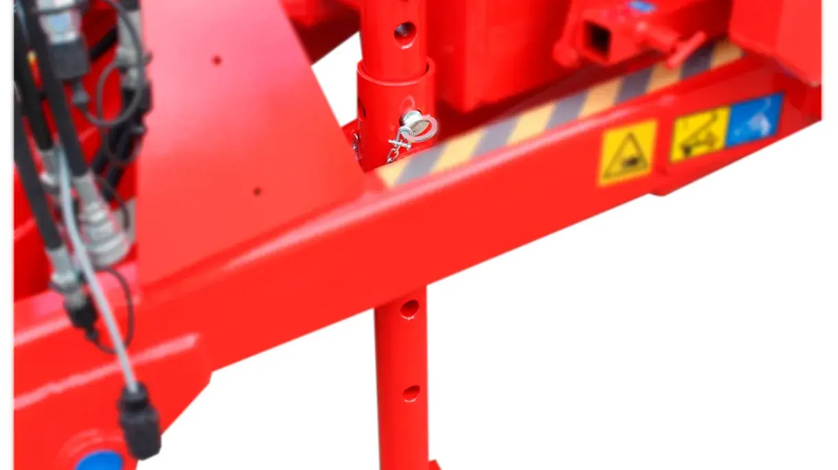 Solution de base constituée d'une béquille rigide dotée d'orifices pour goupilles permettant de régler la hauteur lorsque le tracteur est équipé d'une barre de remorquage à levage.