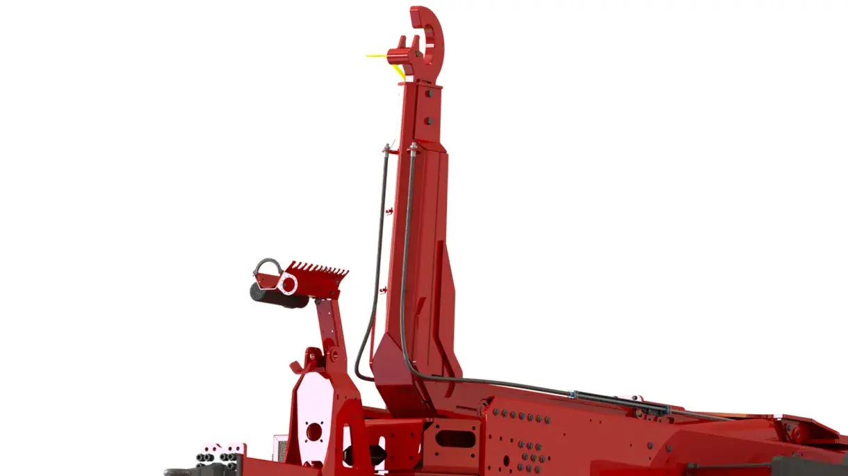 Équipement adapté à une utilisation avec un plateau doté d'un hayon hydraulique si vous souhaitez faire fonctionner le hayon lorsque le plateau est retiré de la remorque. Les flexibles descendent avec le plateau sur le sol et permettent par exemple de monter une mini pelleteuse, de fermer le hayon puis de charger à nouveau le plateau.