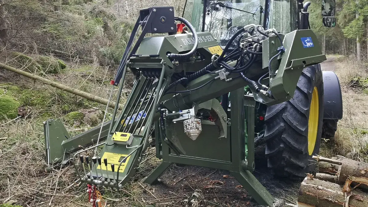 La FARMA-N a une grande capacité et offre de nombreux perfectionnements techniques qui permettent d'effectuer un travail rationnel. La FARMA-N 5 - 15 est équipée d'un puissant treuil hydraulique qui peut être commandé par une télécommande radio ou à partir d'un tableau de commande. La puissance du treuillage est de 2,5 tonnes. Parmi les autres propriétés importantes, on trouve par exemple un vérin d'extension de flèche intégré avec amortissement aux deux extrémités de la course, une tronçonneuse intégrée avec pompe de lubrification et moteur fixe, un grand réservoir hydraulique de.